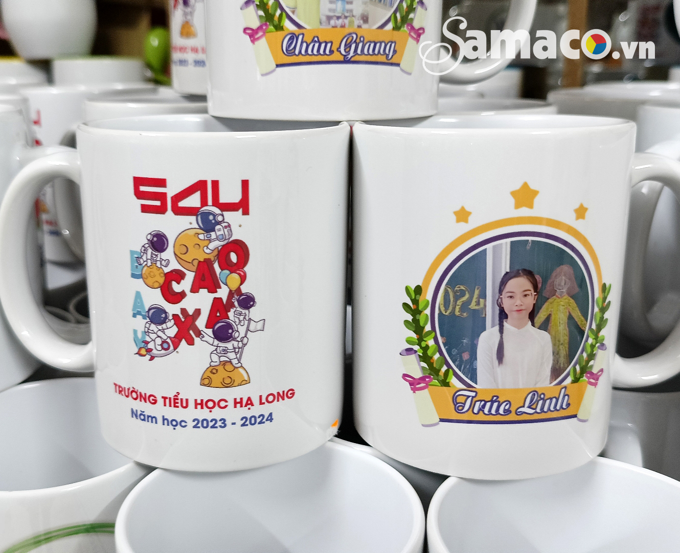 Chất lượng in ấn cao: Quá trình in lên cốc sứ thường sử dụng công nghệ in lụa hoặc in nhiệt cao cấp, giúp tạo ra hình ảnh sắc nét, chi tiết và màu sắc tươi sáng. Điều này cho phép bạn in được các thiết kế phức tạp, hình ảnh đầy màu sắc và gradient mượt mà trên bề mặt cốc sứ.
