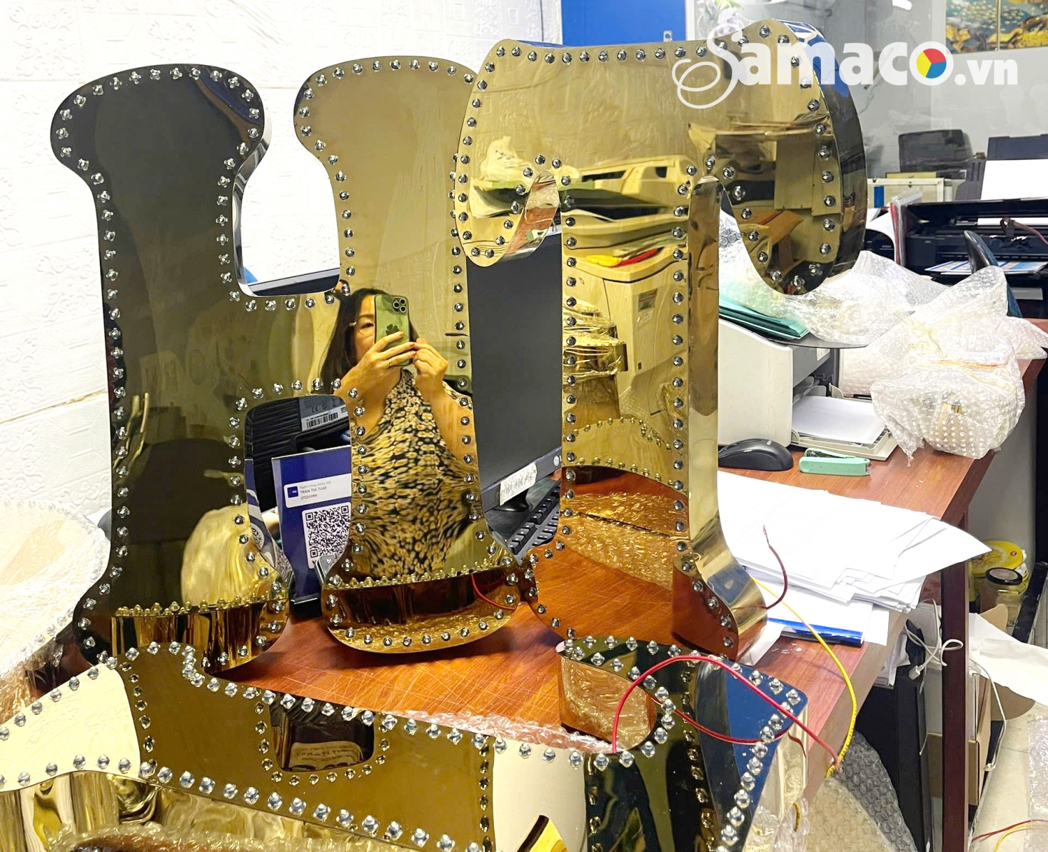 Chữ inox được kết hợp với đèn Led chiếu sáng chân trang trí làm tăng thêm vẻ đẹp và xứng tầm với giá trị của nó.
